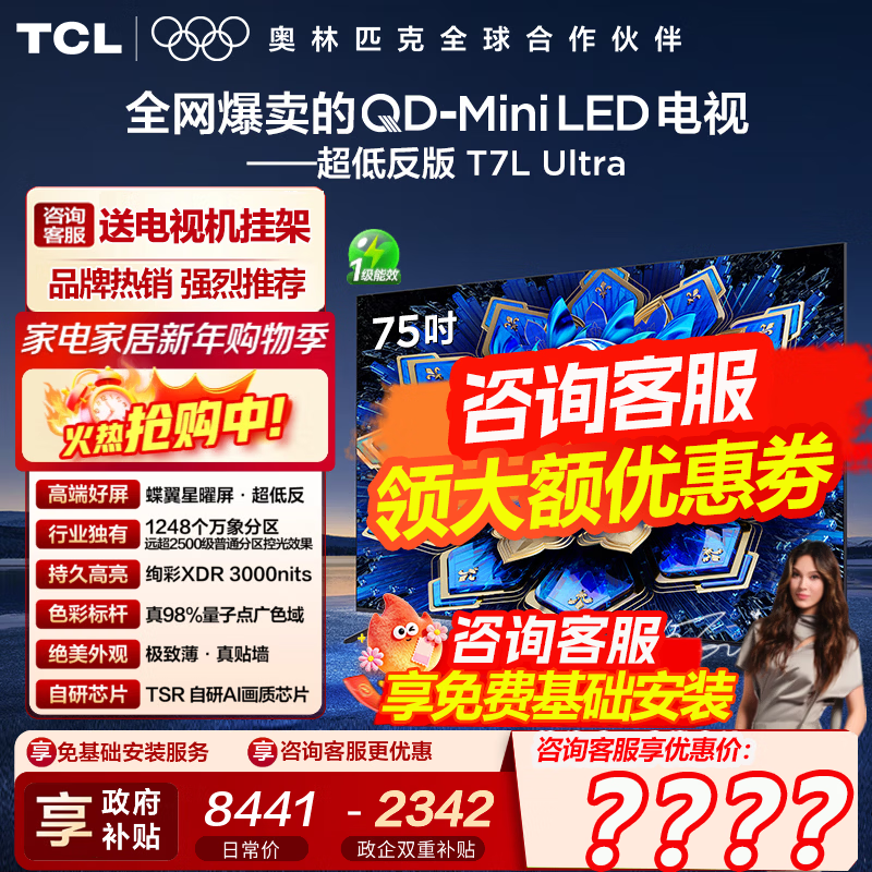TCL智能电视旗舰店手机扫码,领券购买