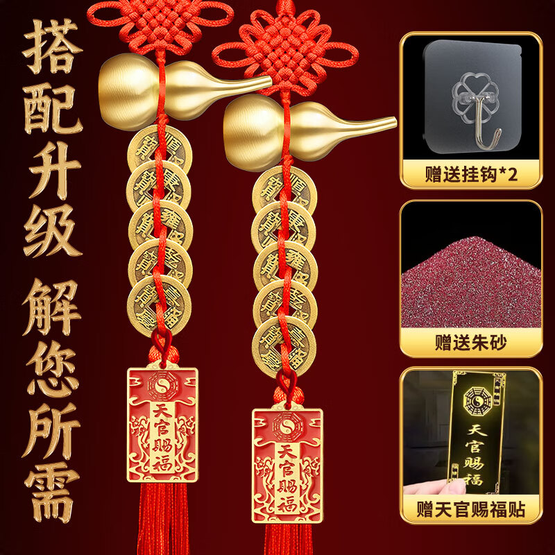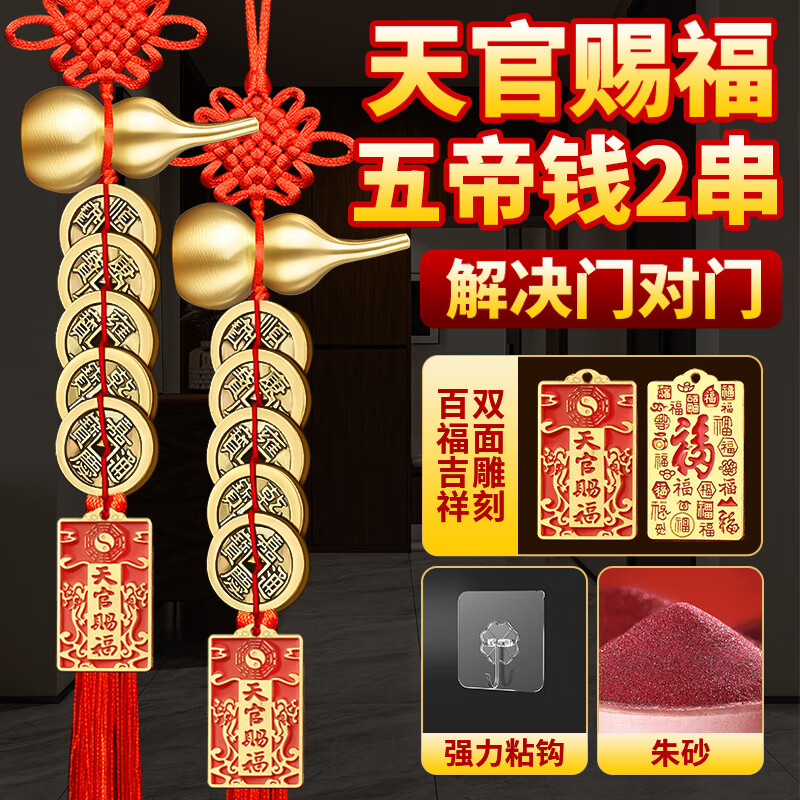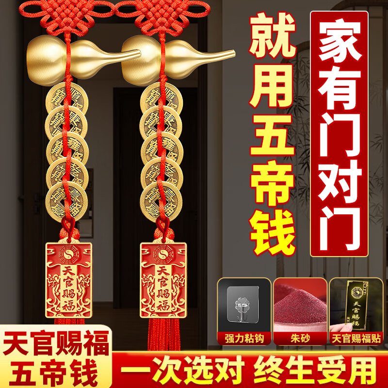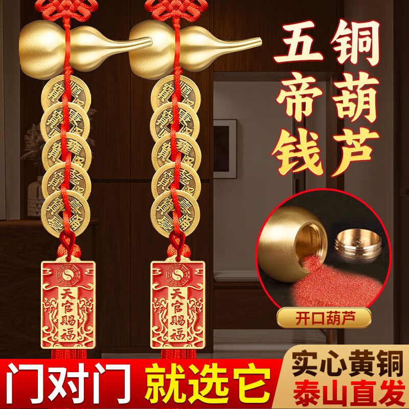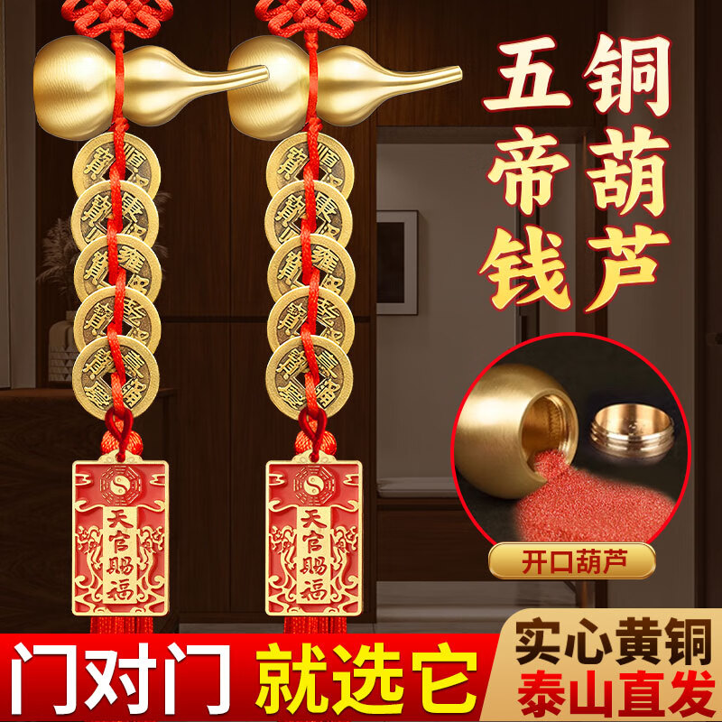 善风善水五帝钱真品入户门正品门对门铜钱挂件开口铜葫芦家用挂大门装饰
